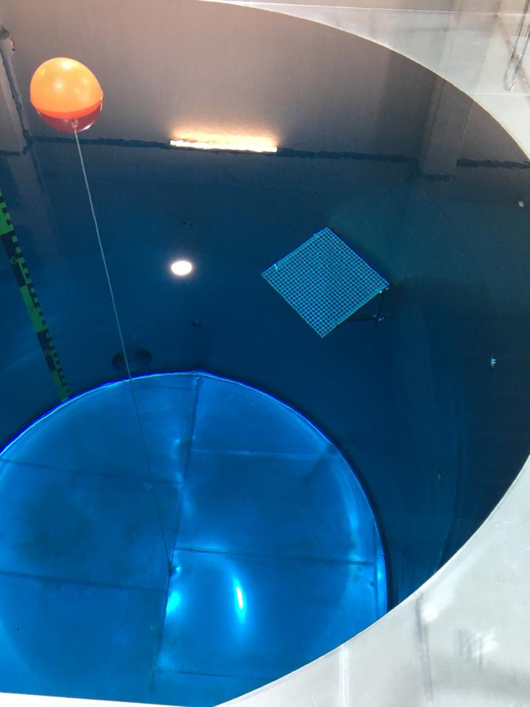 - Een bassin van 9 meter met een platform op 5 meter diepte.